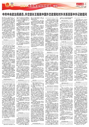 中共中央政治局委员、外交部长王毅 就中国外交政策和对外关系回答中外记者提问