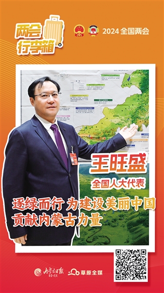 今年全国两会,王旺盛带来了两条关于生态方面的建议。建议从国家层面制定实施内蒙古建设我国北方重要生态安全屏障重大工程规划,在草原森林湿地等重要生态系统保护修复、环境污染防治、绿色低碳循环发展等方面给予政策、资金、项目支持;建议国家在内蒙古成立北方生态安全屏障研究中心,支持内蒙古加快推进生态环境科技创新。