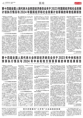 第十四届全国人民代表大会财政经济委员会关于2023年中央和地方 预算执行情况与2024年中央和地方预算草案的审查结果报告
