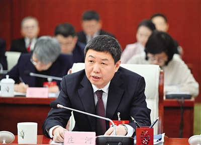 3月10日,全国人大代表庄河在审议“两高”工作报告时说,报告聚焦“国之大者”,彰显出司法为民工作有力度、有温度。 本报记者 马建荃 摄