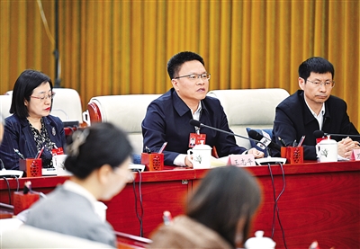 3月9日,在审议“两高”工作报告时,全国人大代表王志平(中)建议针对西部地区基层法律人才短缺的实际,进一步完善基层员额法官遴选机制,常态化开展司法领域人才双向挂职交流。 本报记者 马建荃 摄