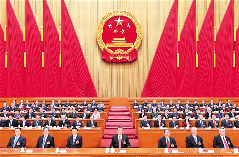 赵乐际指出,大会期间,代表们肩负党和人民重托,以饱满的政治热情和昂扬的精神状态依法履职尽责,认真审议各项报告和议案,会议成果充分体现了党的主张和人民意志的统一,彰显了全过程人民民主和国家根本政治制度的显著优势。