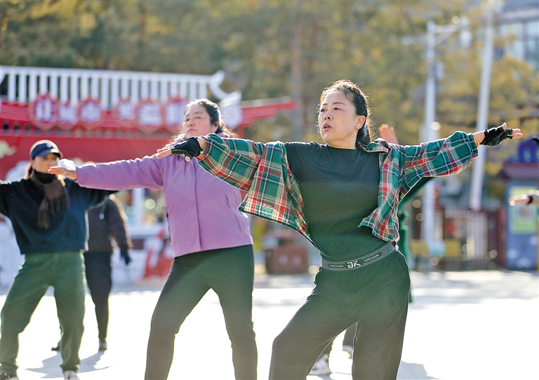 3月12日,呼和浩特市民在玉泉区大召广场跳起广场舞、健身操。连日来,暖洋洋的天气让更多的市民走到户外运动健身,感受春天的气息。随着全民健身理念的深入人心,广场舞、健身操、健步走等深受百姓喜爱的群众性文化体育活动,已经成为促进全民健身与全民健康深度融合的重要载体。2023年,内蒙古自治区体育局开展全民健身“六进”等志愿服务活动800余次,推动健身项目普及,惠及30余万人次。