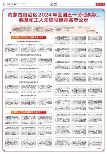 内蒙古自治区2024年全国五一劳动奖状、 奖章和工人先锋号推荐名单公示