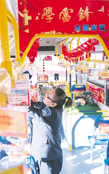 据介绍,“学雷锋”主题车厢于2020年上线运营,车内布置有雷锋画像和雷锋故事相关书籍,座位后背有“雷锋日记”的部分内容摘选,是群众接受雷锋精神教育以及公交窗口单位做好文化宣传员的创新载体。