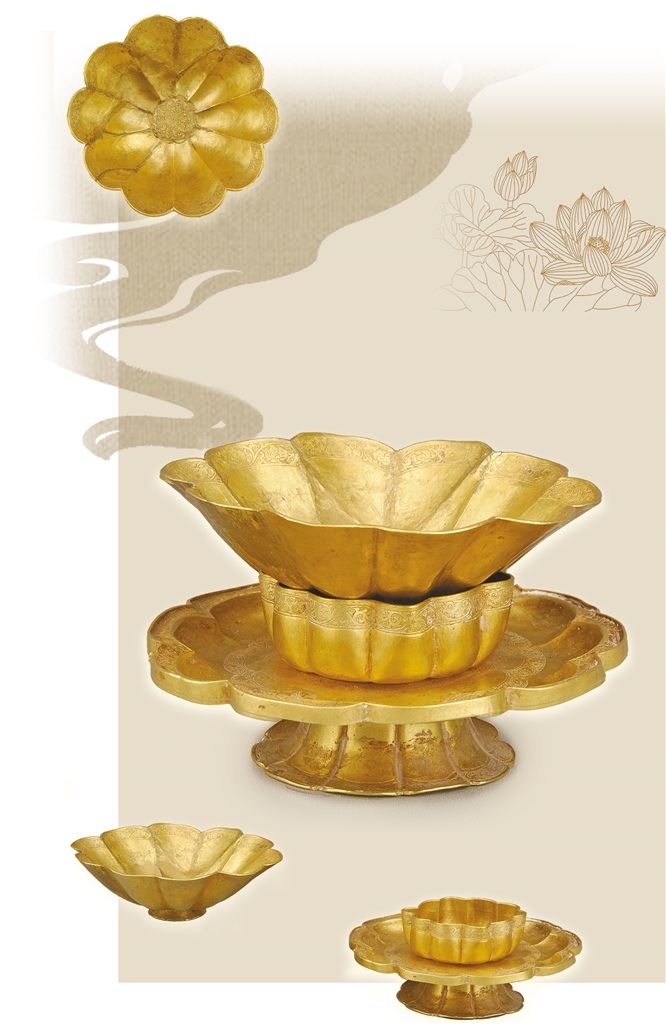西夏时期的金器面世的不多,器皿更为罕见,但重见天日的金器在制作上采用了铸锻、锤揲等多种工艺,再加上黄金本身色彩的美、光亮的美、富贵的美,给人以庄严神秘和富丽的感觉。昂贵的材质、精细的工艺、别致的图案、夺目的色彩,彰显出西夏贵族的地位和权势以及统治者的奢华生活。莲花形金盏托与同时期中原地区盛行的瓷质盏托有很多相似之处,缘于西夏在与宋朝经济贸易往来中,金银器制作深受宋朝的影响,有力证明了中华民族融合发展的悠久历史。