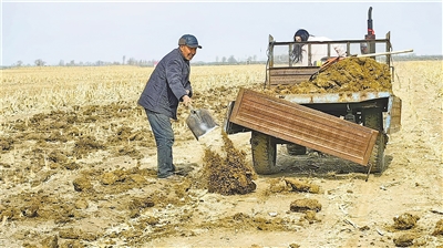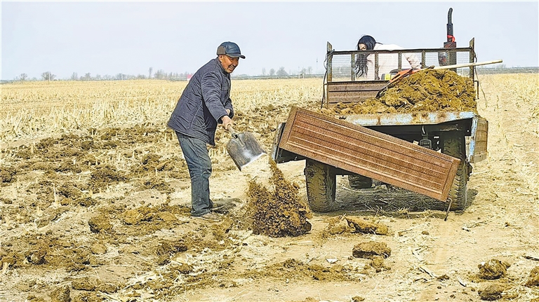 俗话说,庄稼一枝花,全靠肥当家。这几天,通辽市奈曼旗黄花塔拉苏木巴彦敖包嘎查村民吴朝老一家正忙着将牛棚里的牛粪拉运到农田里。吴朝老一直有养牛积粪种庄稼的习惯,对农家肥做底肥“情有独钟”。