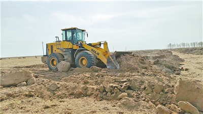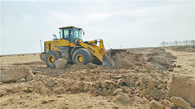 这边村民忙碌着给自家土地“加餐”,那边在巴彦敖包嘎查,500亩地的拉沙盖碱工作正在与时间赛跑,田野里机械轰鸣,拉土车将沙土卸到田间,推土机进行平整,为今年春耕生产做准备。