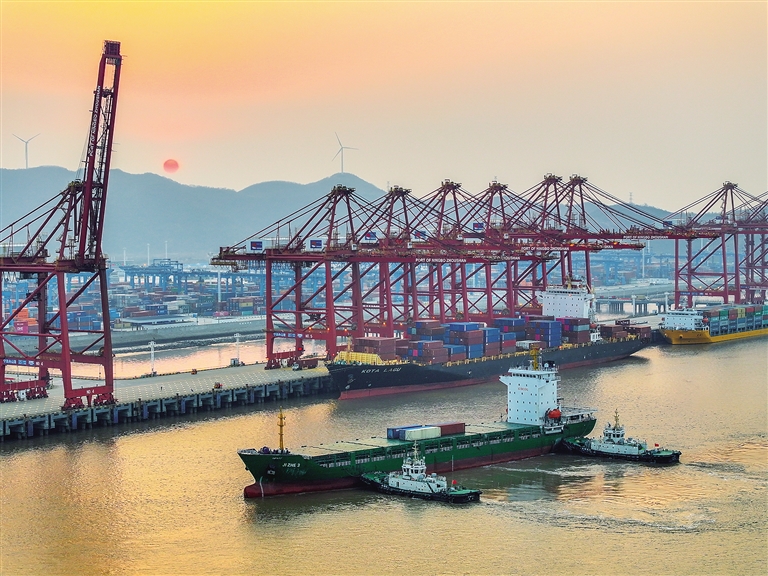 以开放促改革、促发展。伴随着响亮的汽笛,两列从重庆团结村站始发的海铁联运班列,近日先后抵达宁波舟山港铁路北仑港站。随后,班列上的165辆新能源汽车通过船舶转运至墨西哥……随着渝甬班列新能源汽车“双专列”成功首发,宁波舟山港服务国家战略和全球用户的能力进一步增强。