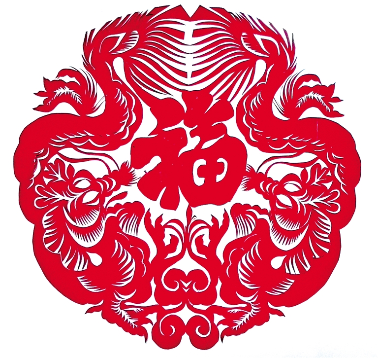 “独具风韵的中华龙文化,孕育了独一无二的龙主题造型。人们爱龙、崇龙,在各种岁时节令、信俗礼仪中都有龙造型的各种表现,这种龙纹样造型集中体现在诸如剪纸、面塑、刺绣、民间绘画、泥塑雕刻、工艺制作等,反映出劳动人民的智慧和精神追求。”中国剪纸(和林格尔剪纸)国家级代表性传承人段建珺说。