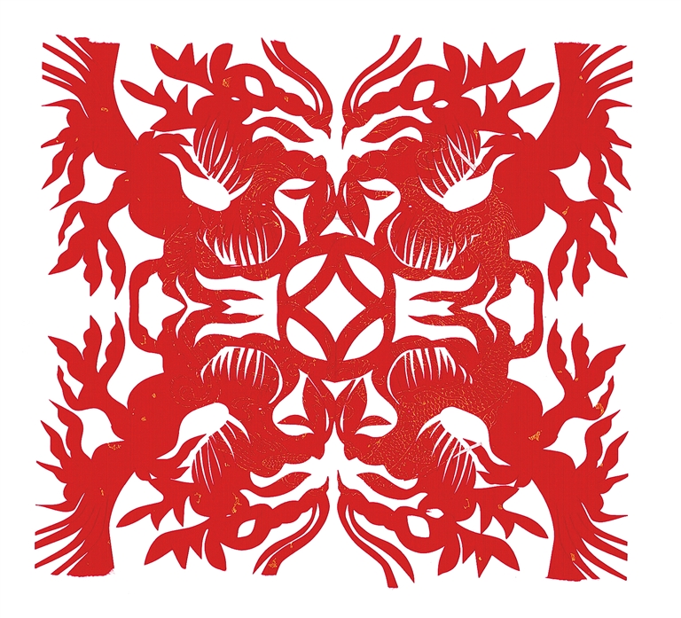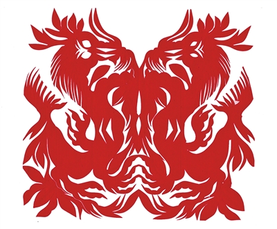 说话间,段建珺的学生已剪出一幅 《腾龙》,虽然只有10多厘米见方,画面中却有大小三条形态各异的龙。据了解,龙纹样剪纸艺术以高度简约而神韵独现备受人们的喜爱,被视为剪纸珍品。