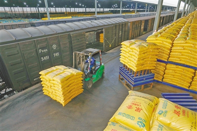 近日,中铁呼和浩特局包头铁路物流中心图克营业室图克中煤尿素专用线内,叉车来回穿梭,将化肥装入列车车厢。进入春耕季,包头铁路物流中心加大春耕物资运输保障力度,积极优化运输组织和服务流程,组织营销人员深入开展调研走访,精准对接农资企业,采用装卸机械与人力作业相结合的模式,全力提高装车效率,保证农耕物资“随到随装、随装随运”。本报记者 马骏驰 通讯员 李宪 摄