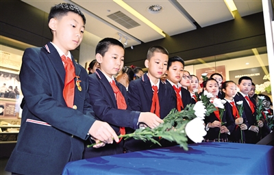 4月3日,呼和浩特市新城区苏虎街实验小学100余名师生来到内蒙古博物院《解放之路》展厅,通过听红色历史、讲红色故事、敬献鲜花、朗诵等方式缅怀革命先烈。