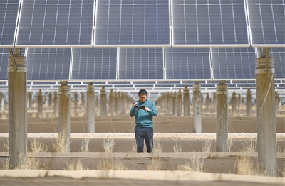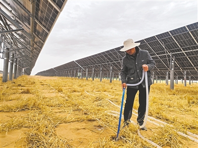 利用仪器对光伏板下种植的梭梭进行检测,记录生长数据,为“光伏+生态治理”提供最适宜的植物参考;高压水打孔植苗法不到20秒就能在沙漠里种植一棵梭梭,大大提高造林效率……在巴彦淖尔市磴口县,科技在防沙治沙中发挥着越来越重要的作用。