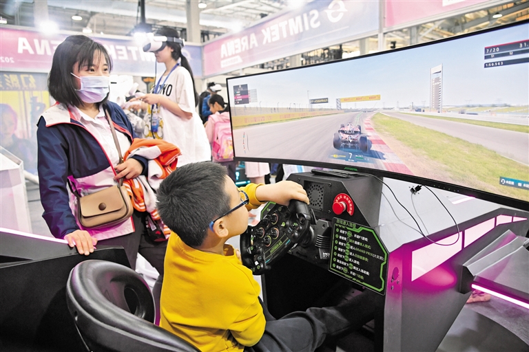 4月27日,小朋友在北京科幻嘉年华现场体验一款赛车体感游戏。当日,2024第八届中国科幻大会在北京石景山区首钢园开幕。据了解,作为2024中关村论坛平行论坛,本届大会设置开幕式、论坛会议、产业促进活动和科幻电影周4个板块,为观众带来“科技+想象力”的视觉盛宴。 新华社记者 任超 摄