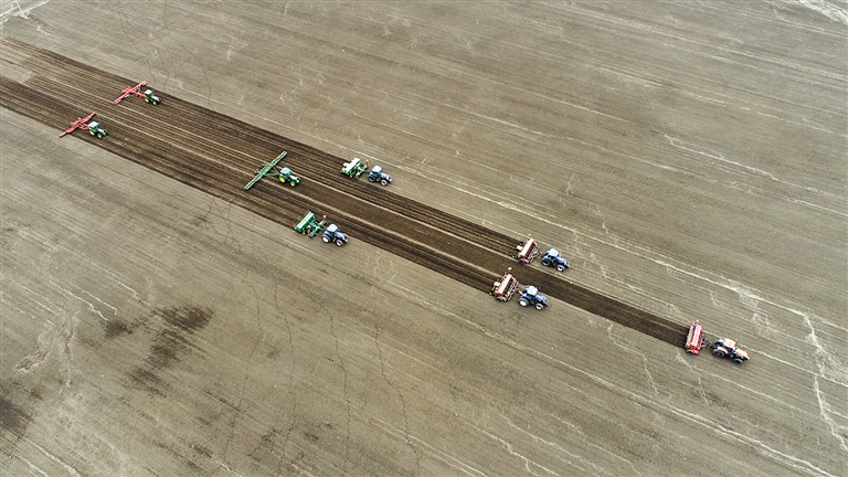 近日,在呼伦贝尔农垦牙克石农牧场,工人驾驶农机在田间播种春小麦。为确保不误农时,呼伦贝尔农垦牙克石农牧场有限公司对达到播种条件的地块试播春小麦,由南向北逐步推进播种进度。据悉,该公司今年预计总播种18.62万亩,其中小麦7.31万亩。王国印 摄