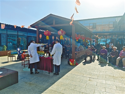 科技辅导员联合东望学雷锋志愿服务队走进呼和浩特市土默特左旗祥乐园养老院,通过科学实验,为老年人讲解声音是如何产生与传播的。
