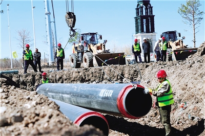 起重机将一根根供热管道吊起,精准地放进沟槽内,一旁的工作人员有条不紊地将一节节供热管道铺设对接……在乌兰浩特市兴安二小区,管网改造工程正在如火如荼地进行中。该小区由于建成年代久远,地下管网严重老化,存在多处漏点。温暖工程启动后,施工队开始对小区内的二级管网进行改造,并对污水、雨水、供热管道进行全面更换,保证住户入冬供暖质量。