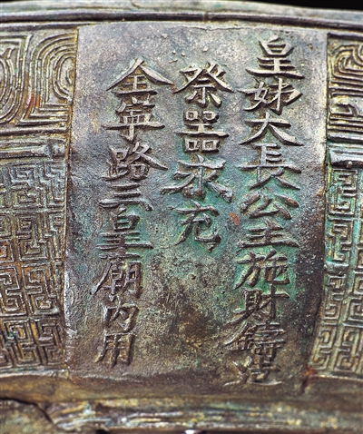 铜簠腹部铭文中的“皇姊大长公主”就是祥哥剌吉,她集皇妹、皇姐、皇姑于一身。祥哥剌吉24岁时下嫁弘吉剌部首领的儿子琱阿不剌,从大都北京来到今天的赤峰市克什克腾旗和翁牛特旗地区,这里当时是弘吉剌部的属地。