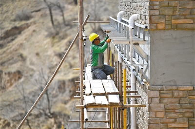 这几日,计划6月份开园的呼和浩特清水河长城国家文化公园内一派忙碌,工人们正在加班加点、紧锣密鼓为开园做着最后的准备,只见以城墙形状装饰的游客中心、依山而建的窑洞民宿、古色古香的建筑小品等设施已基本完工,只待开园迎客。