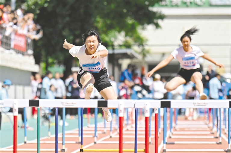 5月26日,参赛选手在女子初中组五项全能100米栏比赛中。当日,主题为“奔跑在文明之城 共筑青春田径梦 呼和浩特创未来”的2024年呼和浩特市中学生田径运动会在内蒙古师范大学体育学院田径场开幕。本次运动会为期5天,共有来自70支参赛队伍的1736名运动员,在16个田径项目中展开激烈角逐。本报记者 王磊 摄