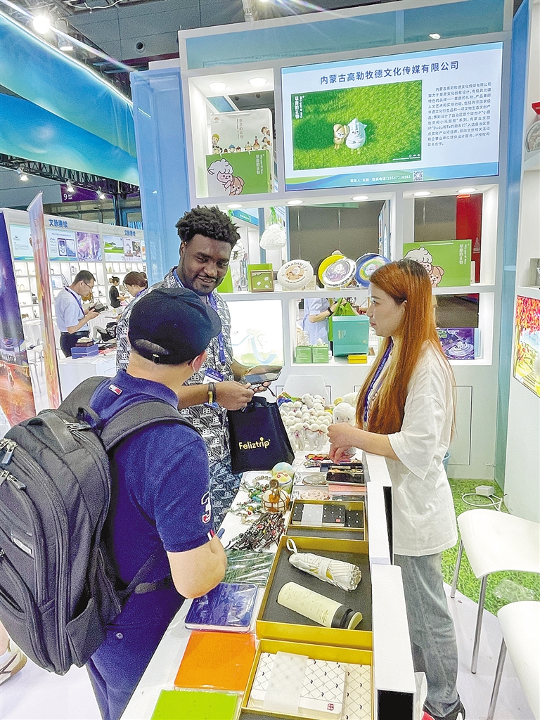 本届深圳文博会上,内蒙古展区以“亮丽内蒙古 创意新生活”为主题,共32家企业参展,展区内设有文脉赓续、多彩非遗、文旅融合、数字赋能、那达慕等5个板块,全面推介内蒙古文旅资源,全方位展示内蒙古蓬勃发展的文化产业。