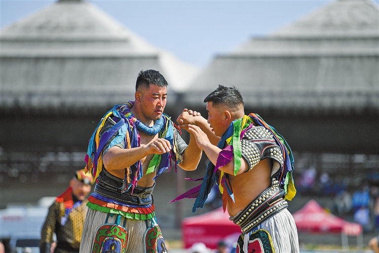 争斗相扑、盘旋相持、腿膝相击……一场力与技的较量日前在敕勒川草原激情上演。搏克运动在追求力量的同时也注重技巧,体现了草原人民对生活的热爱以及勇敢坚持、战胜困难、不畏艰险的精神。