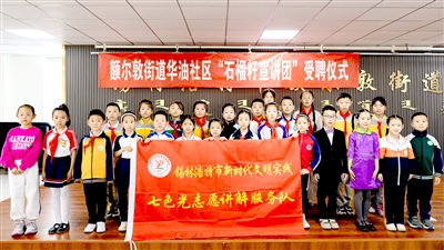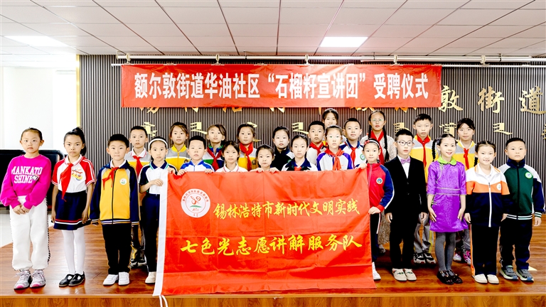 日前,锡林浩特市额尔敦街道华油社区举行“石榴籽讲堂”受聘仪式。仪式上,社区为“七色光”少年讲解团“红石榴”宣讲员颁发了聘书。华油社区党委书记刘敬东说:“在‘民族政策宣传月’活动期间,社区特意邀请了‘七色光’志愿者担任‘石榴籽讲堂’的讲解员。下一步,将在每半个月推出一期以民族团结小故事或宣传党的民族政策为主要内容的宣传片,并在网上进行推广,有形有感有效铸牢中华民族共同体意识。”