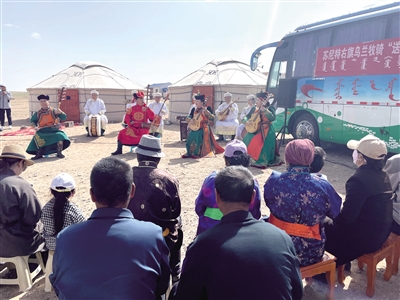 活动期间,乌兰牧骑队员们为牧民们送上了歌舞、好来宝、马头琴演奏等喜闻乐见的精彩文艺节目,并向群众宣传党的民族政策,普及民族团结进步知识,进一步增强了民族团结的凝聚力。