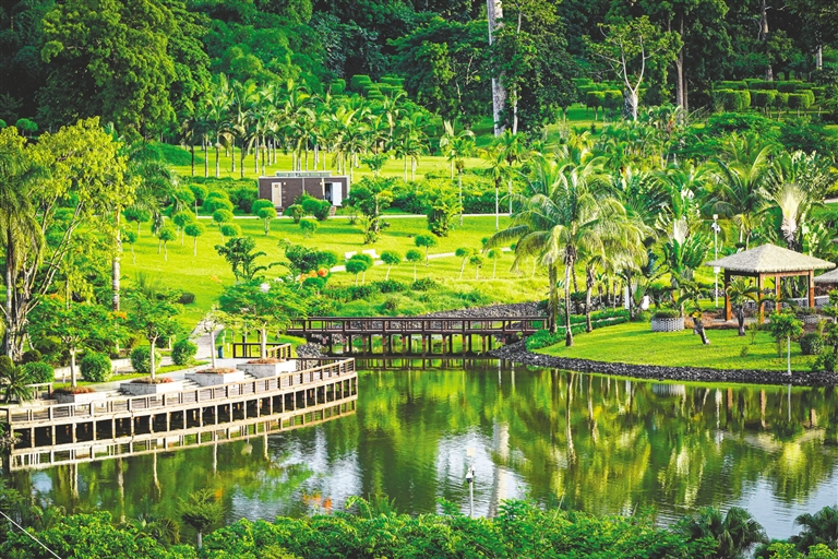 这是5月18日在赤道几内亚首都马拉博拍摄的马拉博国家公园。马拉博国家公园位于赤道几内亚首都马拉博,由中国路桥工程有限责任公司承建。项目于2011年开工,2016年正式投入运营。马拉博国家公园占地87万平方米,园区分为独立广场区、中心景观塔区、体育休闲运动区、儿童游乐区、中心湖区、森林保护区等多个功能区域,融自然景观、休闲娱乐、运动、教育于一体。作为赤道几内亚首个大型城市综合性园林,马拉博国家公园丰富了当地人民的文化娱乐生活,还为当地创造了数百个工作岗位,成为中赤几两国友谊的一张耀眼名片。 新华社记者 韩旭 摄