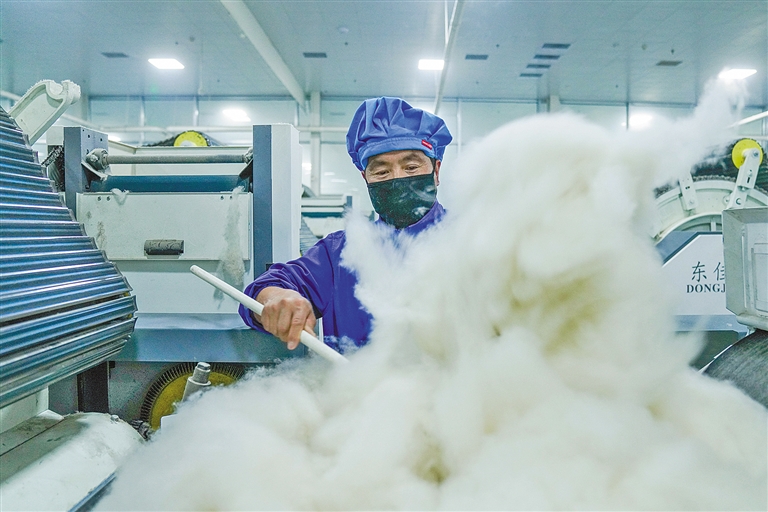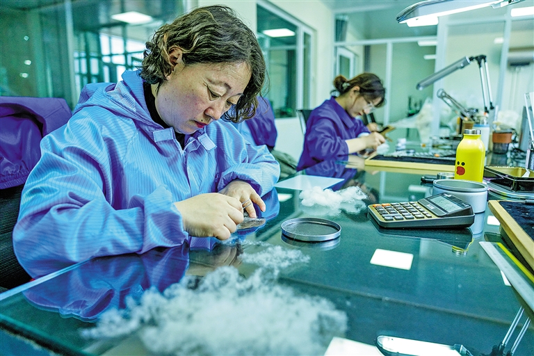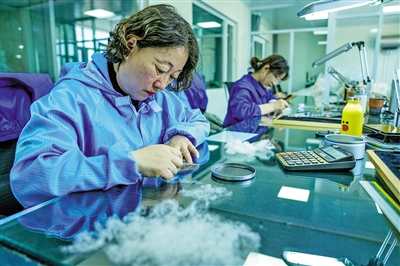安装设备、机器调试、选绒、洗绒……近日,鄂尔多斯市鄂托克前旗内蒙古劲牛现代农牧业开发有限公司现代化梳绒厂生产车间内一片繁忙,工人正在加紧生产、赶制订单。
