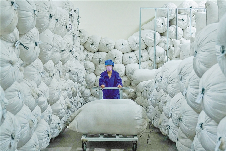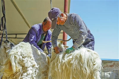 牧民梳理好的羊绒进入梳绒厂,历经一道道工序后变成更加洁白细密的羊绒,被工人们打包运输进仓储房间。梳绒厂负责人李林堂告诉记者,羊绒的销量不错,除了售往全国各地,还有一部分能够远销到俄罗斯、美国、意大利等国家。