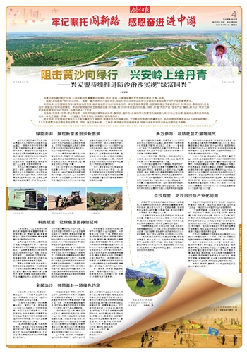 从与沙博弈到向沙要效益,兴安盟在可持续、可循环、可发展的生态治理新模式上不断探索向前,坚定不移地走生态优先、绿色发展之路,确保生态和经济效益“双赢”。