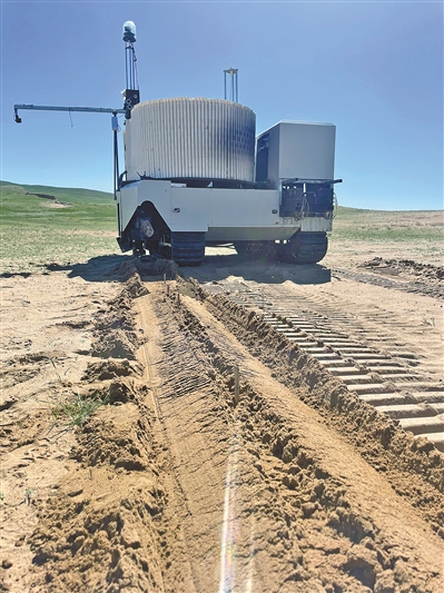植树机器人,几秒钟即可在沙漠中种植一株苗木,成活率达90%以上;沙障铺设灌木扦插一体机,实现可降解的植物纤维沙障铺设和沙柳扦插同时进行……先进机械的使用,告别过去手抬肩扛的植树方法,大大降低治沙成本、提高作业效率。