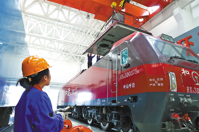 在“西煤东运”大通道唐包铁路上,每天都有近30万吨煤炭通过这条铁路线,驶向全国各地。这些万吨重载机车在行驶一定的里程或时长后,会驶进呼和浩特机务段呼和南检修车间,做一次彻底的“大保养”。