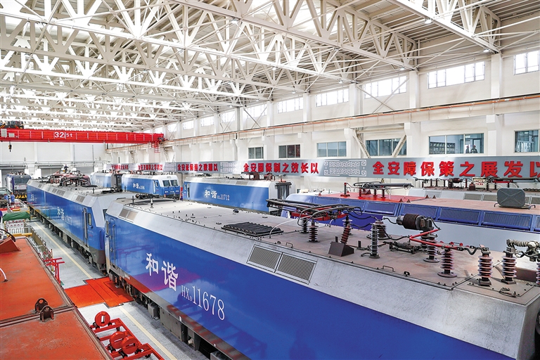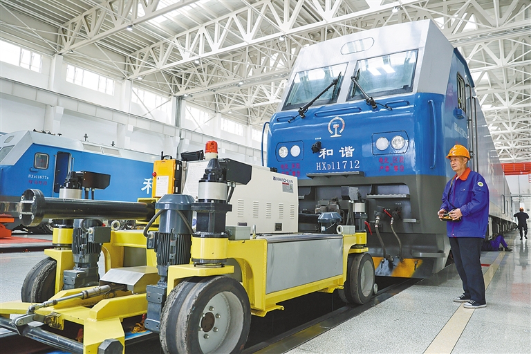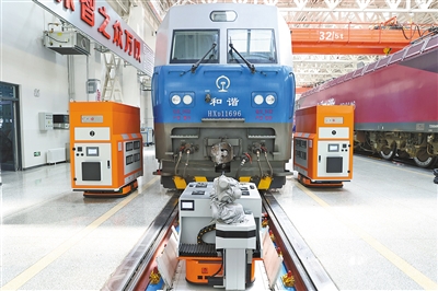 为提高机车检修效率,给能源大通道提供坚实的运力保障,呼和浩特机务段在2023年投入使用了机车智能检修库,为机车提供全面的检查和整修。
