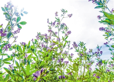 一场雨刚过,呼和浩特市土默特左旗国家现代农业示范区内紫花苜蓿草清香阵阵。
