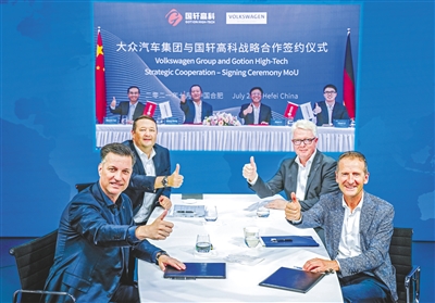 “未来我们在欧洲生产的电池会重点供货包括大众在内的欧洲车企。”国轩高科中国业务总裁王启岁说。2023年9月,国轩高科在德国哥廷根的电池工厂正式投产。国轩高科与大众未来将在储能领域强强联合,通过更多的新能源场景应用,助力全球碳中和。