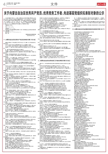 一、内蒙古自治区优秀共产党员拟表彰对象(100名)