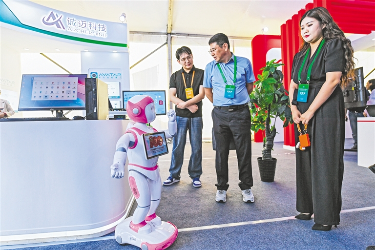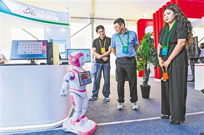 在大会的人工智能展览展示体验区,600平方米的空间内汇聚了12家知名企业,全方位展示出AI领域的领先实力和丰富成果。I宝机器人、云电脑、国产AI训推一体机、双屏翻译机等产品,满满的科技感,吸引了不少参会者驻足了解。