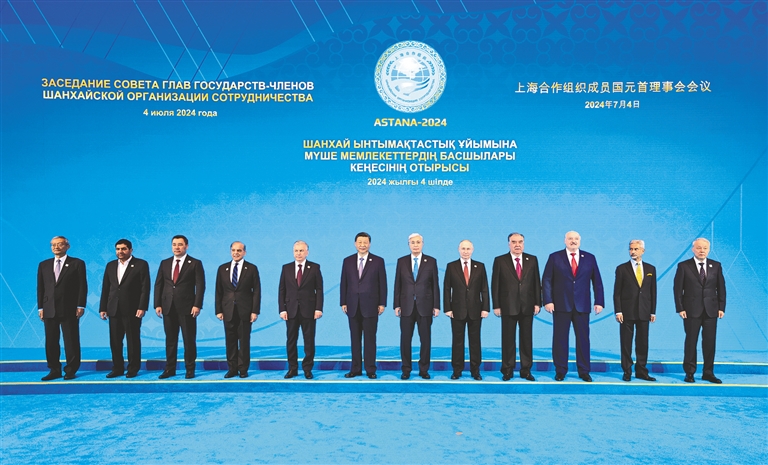 习近平同上海合作组织成员国领导人集体合影,随后出席元首理事会会议。