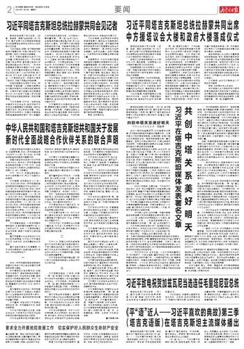 习近平在塔吉克斯坦媒体发表署名文章~~~