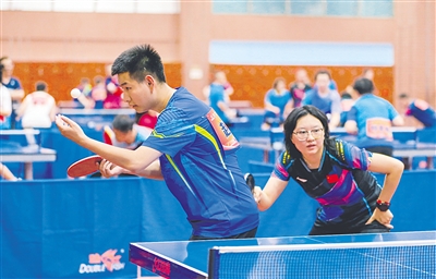 7月6日,参赛选手正在进行比赛。当日,“健康正出发 周末动起来”2024年呼和浩特市乒乓球俱乐部赛暨内蒙古自治区第十六届运动会群众组乒乓球项目第一次选拔赛在呼和浩特市乒羽网保馆开赛,共有35支队伍235名选手参加混合团体及个人单项比赛。