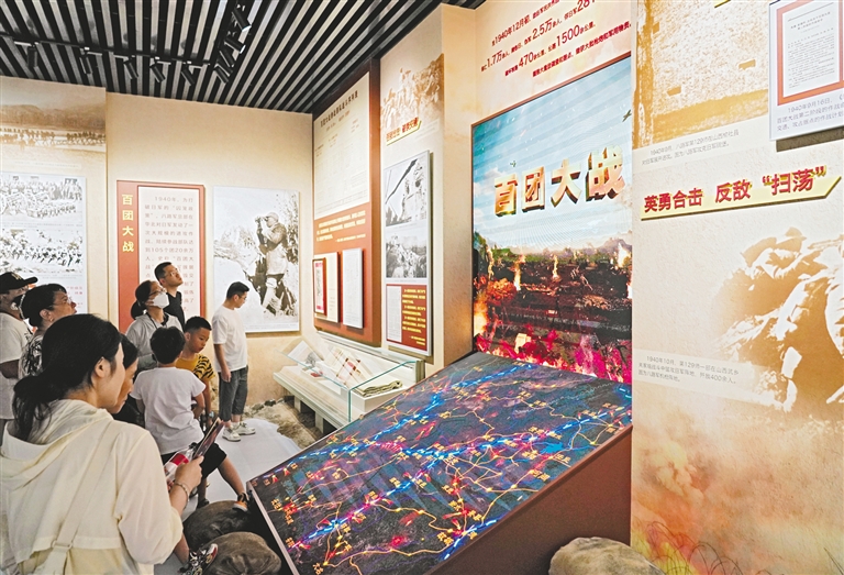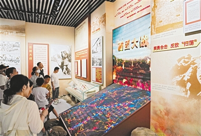 7月7日,游客在宛平城内的中国人民抗日战争纪念馆内参观纪念全民族抗战爆发87周年专题展览。7月7日是“七七事变”87周年纪念日。87年前,“七七事变”在北京西南宛平城外的卢沟桥爆发,拉开了中华民族全面抗战的序幕。如今的卢沟桥旁高铁飞驰而过,宛平城内外鲜花娇艳,但宛平城墙上的弹痕依然触目惊心,时刻提醒着后人铭记历史、缅怀先烈、珍爱和平。