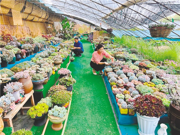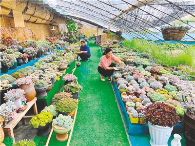 | 在鄂尔多斯市准格尔旗蓝天街道阿岱沟村,村民们种植小盆花卉,尽显文明健康新风尚。本报记者 郝雪莲 摄 |