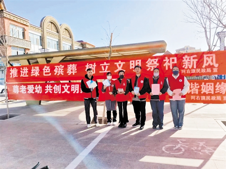| 阿拉善盟阿拉善右旗民政局在巴音温都尔广场组织开展“推进绿色殡葬 树立文明祭祀新风”宣传活动。石静波 摄 |