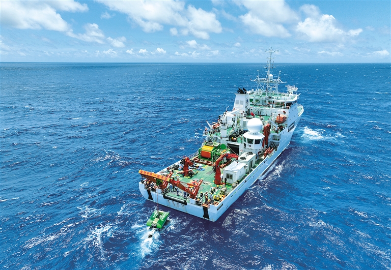 连续5天,“开拓二号”海底探“宝”动作不断:每天完成1个潜次,分别达到1802.4米、1929.9米、1955.8米、2048.5米和4102.8米的深度,并成功获得200多公斤多金属结壳、多金属结核等各类深海矿产样品。