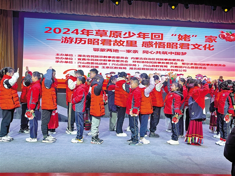 今年1月,呼和浩特市和鄂尔多斯市的各族中小学生赴湖北省宜昌市,参加“游历昭君故里 感悟昭君文化”研学活动,与当地学生“结对子”,以同吃、同住、同游、同学、同乐的形式,一起了解“昭君出塞”“三千孤儿入内蒙”等民族团结故事,进一步增进“五个认同”。