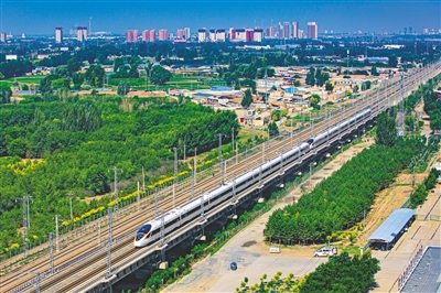 7月16日,一列“复兴号”列车行驶在京包客专线内蒙古段。中国铁路呼和浩特局集团有限公司紧盯暑运安全,强化出行服务,全力保障列车安全稳定运行。2024年暑运于7月1日开始持续至8月31日,共计62天,预计发送旅客845万人次。通讯员 刘锦波 摄