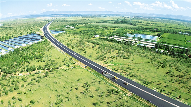 7月25日,在S29呼凉高速公路施工总承包二标段施工现场,工程车辆正在进行路面中面层沥青摊铺作业。呼凉高速即呼和浩特至凉城高速公路,路线全长28.744公里,其中新建24.444公里,由内蒙古路桥集团承建的二标段,全长14.743公里。截至目前,土方、桥涵工程全部完工,路面防排水工程已完成80%,项目建成后,呼和浩特去往凉城县的时间将由原本的一个半小时车程缩短至40分钟左右。本报记者 怀特乌勒斯 摄